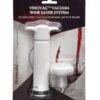 Automatic vacuum pump for saving leftover wine. Position unit over the bottle top and push down. The trigger switch will be activated. Air will be extracted automatically. When extraction is completed LCD will show “OK”. Then press the top bottom labeled “TEMP”. It will display wine temperature in F° or C°. The lower buttom, “STORAGE TIME” indicates how many days and hours the wine has been stored. Pull unit straight up off bottle to remove.