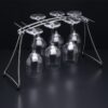 The sleek chrome rack suspends glasses, allowing air to circulate and prevent water spots. Rubber-tipped legs fold flat for easy storage.
